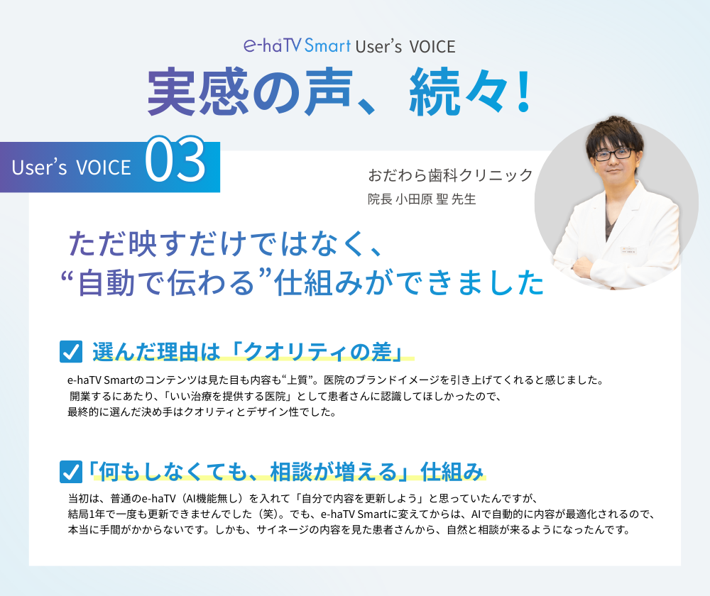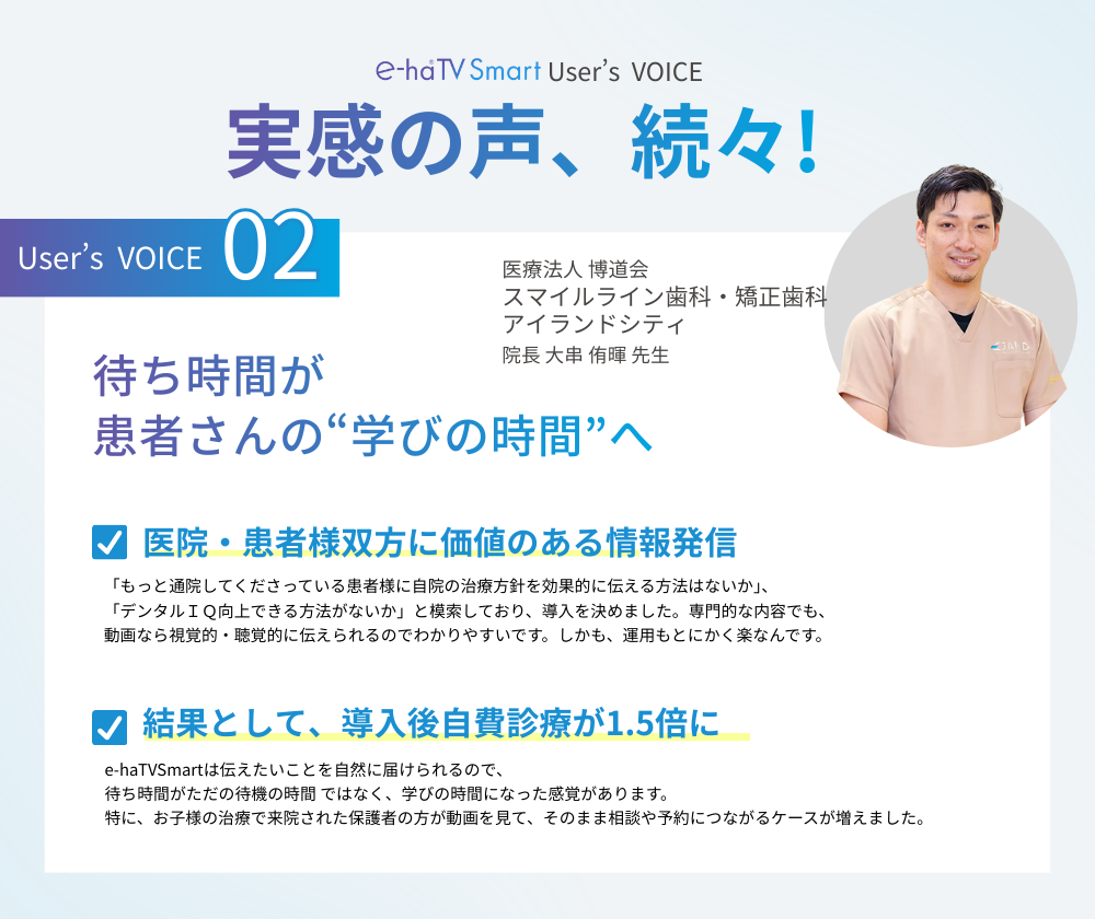 待合室を“治療の価値を伝える場”に変えるのは、e-haTV Smartだけ。
